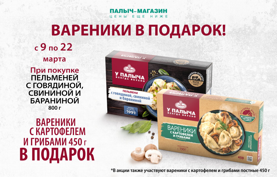 При покупке пельменей вареники в подарок!