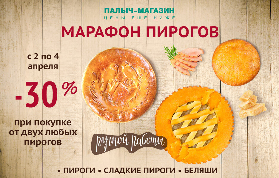 Марафон пирогов! Выгода 30% на пироги!