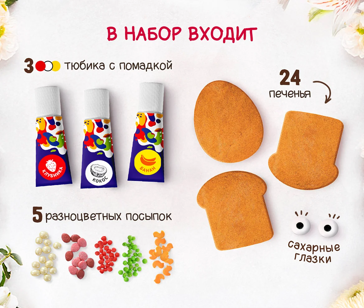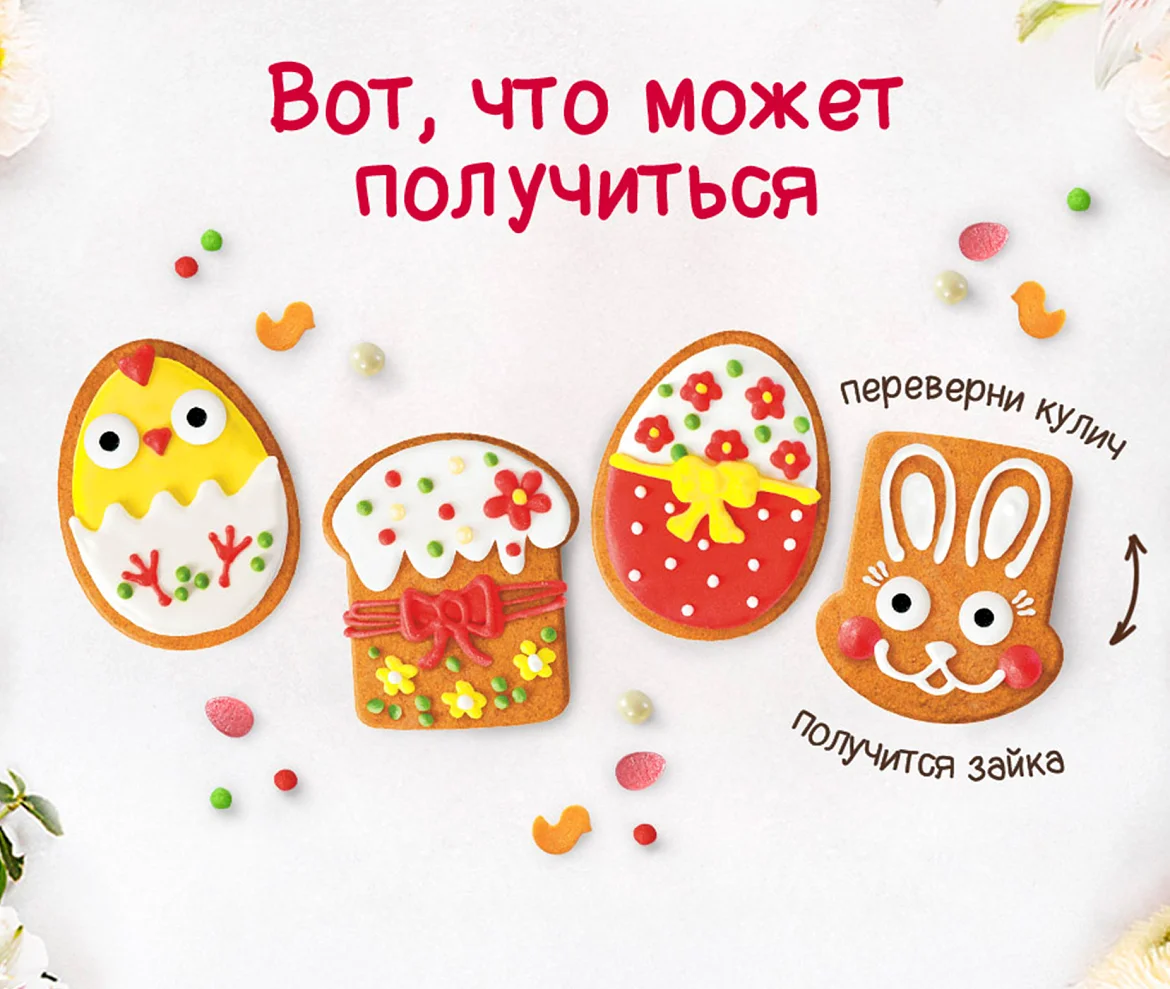 Погрузитесь в весеннее волшебство с нашим пасхальным набором для раскрашивания печенья! Этот очаровательный комплект включает фигурное печенье, разноцветные помадки и яркие сладкие посыпки. С помощью помадок и посыпок печенье можно превратить в праздничный кулич, пасхальное яичко, милого цыпленка или зайчика. Создайте свои маленькие шедевры, наполнив их красками и радостью. Идеально для семейного творчества, подарка или уютного праздничного вечера — этот набор превратит подготовку к Пасхе в настоящее приключение, полное вкуса и вдохновения!