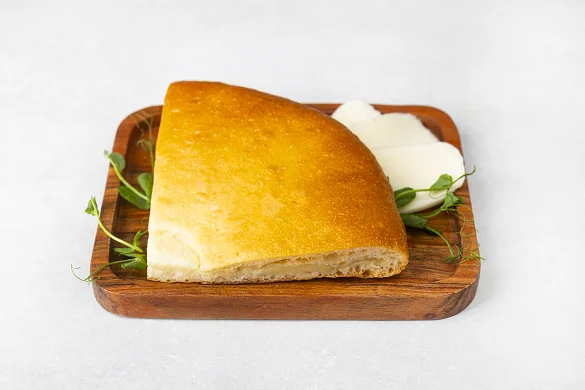 Мука пшеничная хлебопекарная в/с, сыр Домашний (творог, вода очищенная, масло сливочное, молочный белок, сухое обезжиренное молоко, соль, регуляторы кислотности: цитрат натрия, лимонная кислота), творог 9%-ной жирности (молоко нормализованное, закваска), вода очищенная, молоко питьевое, масло подсолнечное рафинированное дезодорированное, масло сливочное (сливки пастеризованные), соль, сахар, чеснок свежий, дрожжи хлебопекарные сухие. Произведено на предприятии, на котором также выпускаются продукты, содержащие арахис, горчицу, кунжут, моллюски, орехи, рыбу, сельдерей, сою, яйца.