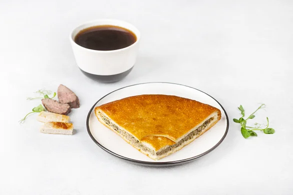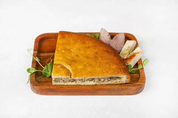 Вкуснейший осетинский пирог по фирменному рецепту нашего шеф-повара. В наших осетинских пирогах мы используем особенное тончайшее сдобное тесто без яйца. В начинку мы добавляем два вида мяса, шпинат и сыр собственного производства. Очень важно правильно сформировать и затем раскатать такой пирог. Это 100% ручная работа. Свежесть обеспечивается за счёт уникальной технологии упаковки, позволяющий сохранить полезные свойства и отменные вкусовые качества продукта на протяжении всего срока годности. Теперь можно купить один кусочек осетинского пирога, полный традиционного тепла и вкуса!