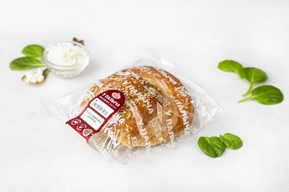 Мука пшеничная в/с, творог 9%-ной жирности (молоко нормализованное, закваска), вода очищенная, сыр Российский (молоко нормализованное, соль, закваска (мезофильные молочнокислые микроорганизмы), молокосвертывающий ферментный препарат животного происхождения, уплотнитель хлорид кальция), маргарин (рафинированные дезодорированные растительные масла, вода, эмульгатор эфиры полиглицерина и жирных кислот, соль, краситель бета-каротин, регулятор кислотности лимонная кислота), шпинат с/м, сахар, семена кунжута, зелень петрушки свежая, соль, чеснок свежий, ароматизатор экстракт ванили натуральный, дрожжи хлебопекарные сухие. Произведено на предприятии, на котором также выпускаются продукты, содержащие арахис, горчицу, моллюски, орехи, рыбу, сельдерей, сою, яйца.