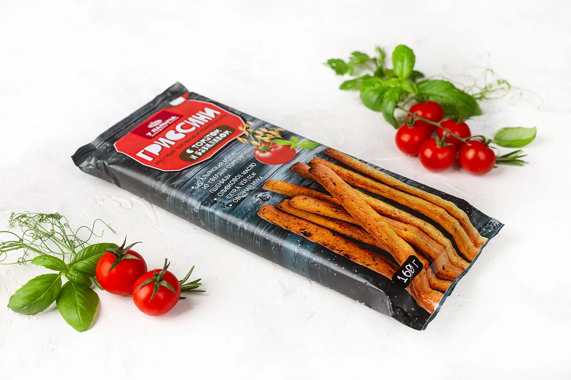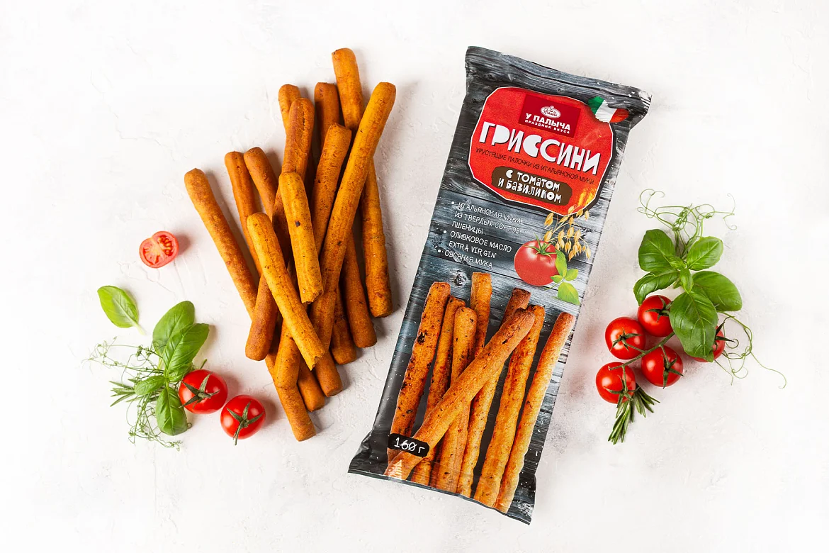 Хрустящие гриссини из итальянской муки с томатами и базиликом 160 г