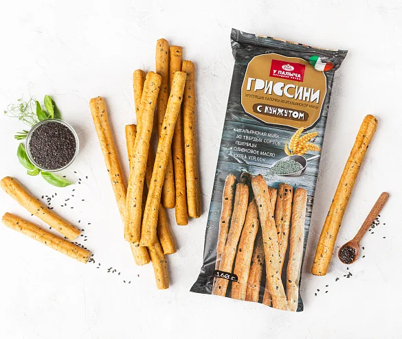 Традиционные и очень вкусные итальянские хлебные палочки с высококачественной мукой из твердых сортов пшеницы, поставляемой напрямую из Италии, с добавлением натурального оливкового масла Extra Virgin и ценных семян кунжута, богатых антиоксидантами и витаминами. Гриссини идеально подходят к супам, салатам, а также в качестве самостоятельной закуски, полезного перекуса, который удобно взять с собой, или изысканной альтернативы хлебу. Настоящее удовольствие с аппетитным хрустом в элегантной подаче! Обязательно попробуйте всю коллекцию вкусов гриссини от Палыча!