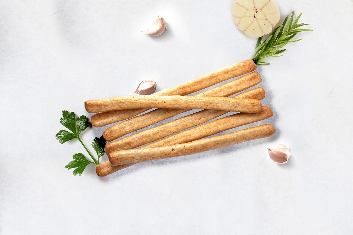Традиционные и очень вкусные итальянские хлебные палочки с высококачественной мукой из твердых сортов пшеницы, поставляемой напрямую из Италии, с добавлением натурального оливкового масла Extra Virgin и душистого чеснока, придающего выпечке обворожительную пикантность. Гриссини идеально подходят к супам, салатам, а также в качестве самостоятельной закуски, полезного перекуса, который удобно взять с собой, или изысканной альтернативы хлебу. Настоящее удовольствие с аппетитным хрустом в элегантной подаче! Обязательно попробуйте всю коллекцию вкусов гриссини от Палыча!
