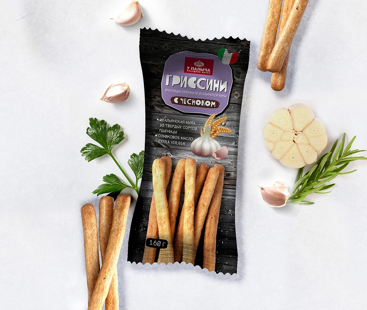Хрустящие гриссини из итальянской муки с чесноком 160 г