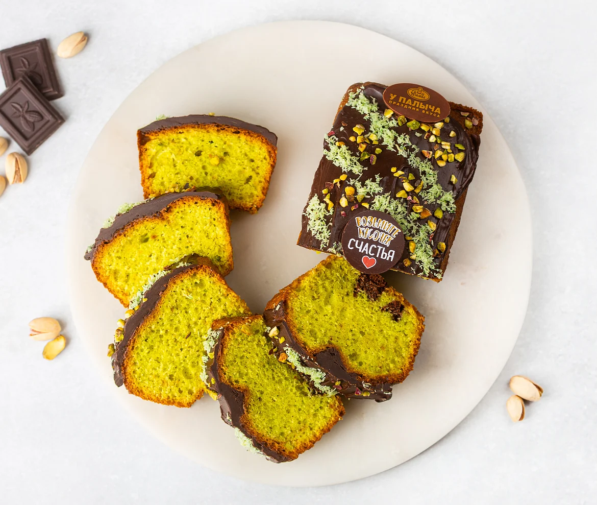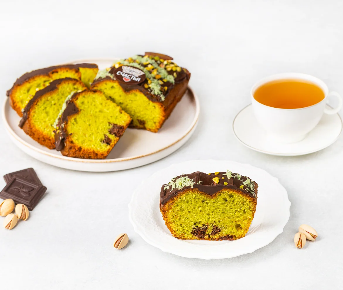 Роскошный кекс в стиле Дубайского шоколада – это воплощение восточной сказки! Нежная основа с бархатистой фисташковой пастой из отборных фисташек тает во рту, а в сердце – тёмный шоколад с хрустящими нитями катаифи, добавленными при выпечке для изысканной текстуры. Сверху кекс покрыт блестящим ганашем из тёмного шоколада, украшен воздушным катаифи и дроблёной фисташкой, создавая гармонию вкуса и эстетики. Настоящее наслаждение для гурманов!