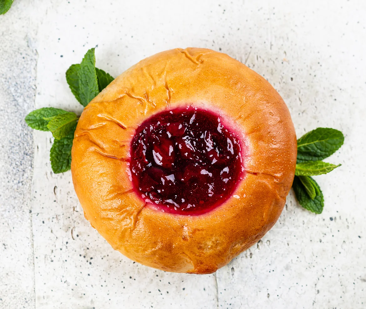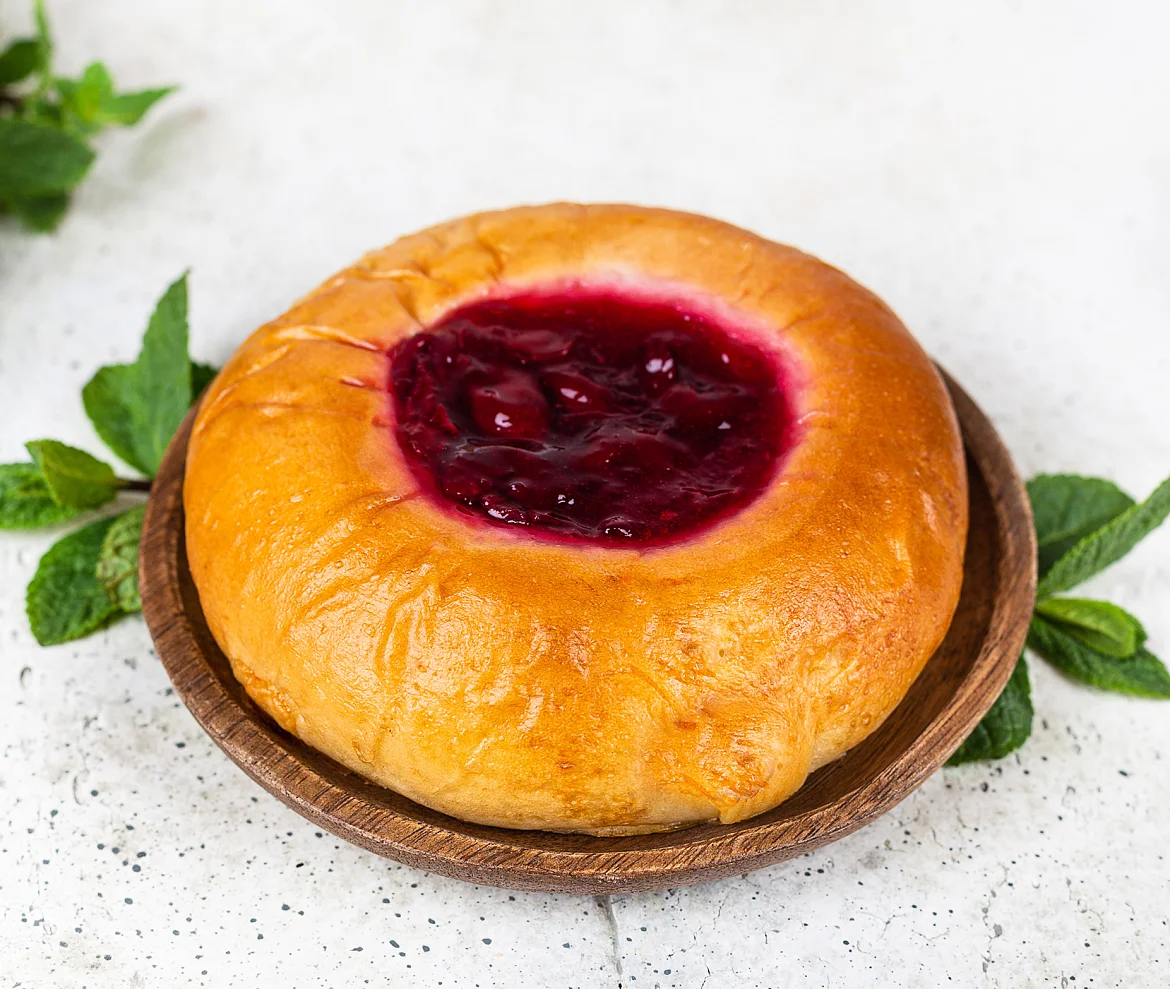 Классическая пышная Ватрушка из сдобного дрожжевого теста с густой сочной начинкой из цельных ягод спелой вишни. Рекомендуем разогреть Ватрушку перед употреблением — так еще вкуснее!