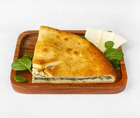 Сдобный румяный пирожок в форме лодочки с начинкой из свиного окорока, куриного филе и говядины, с добавлением натурального Домашнего сыра, картофеля и свежего чесночка. Вкуснейший представитель национальной кухни с вековой рецептурой.