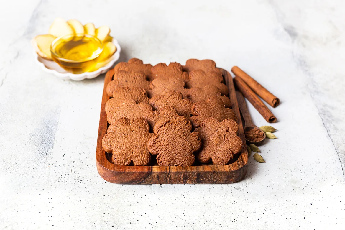 Ароматное песочное печенье с натуральным цветочным медом, эквадорским какао и букетом чарующих пряностей, изготовленным из кардамона, гвоздики и корицы, с пикантным шлейфом настоящего кайенского перца.