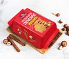 Мука пшеничная в/с, сахар, маргарин (рафинированные дезодорированные масла в натуральном и модифицированном виде, вода), яйцо куриное пищевое, ядра орехов фундука (5%), корица молотая, антиокислители: соевый лецитин, аскорбилпальмитат, токоферолы; соль, ароматизатор экстракт ванили натуральный. Произведено на предприятии, на котором также выпускаются продукты, содержащие арахис, кунжут, молоко. ПРИ ПРОИЗВОДСТВЕ ИСПОЛЬЗУЮТСЯ ОРЕХИ, КОТОРЫЕ ПРОШЛИ ТЩАТЕЛЬНУЮ ОБРАБОТКУ, ОДНАКО, В РЕДКИХ СЛУЧАЯХ НЕ ИСКЛЮЧЕНО ПОПАДАНИЕ СКОРЛУПЫ И (ИЛИ) ЕЁ ФРАГМЕНТОВ.