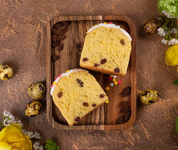 Формы одноразовые для выпечки кондитерских и хлебобулочных изделий: 5 шт Полуфабрикат мучного изделия без содержания молочных компонентов смесь куличная. Состав: мука пшеничная в/с, сахар, дрожжи хлебопекарные сухие, соль, ароматизатор экстракт ванили натуральный. Кондитерский сахаристый полуфабрикат помадка сахарная. Состав: сахар, патока, вода очищенная, эмульгаторы: моно- и диглицериды жирных кислот, ароматизатор экстракт ванили натуральный. Виноград сушеный (изюм). Состав: виноград сушеный без косточки (изюм), масло подсолнечное рафинированное дезодорированное. Кондитерский сахаристый полуфабрикат посыпка декоративная. Состав: мука пшеничная в/с, сахар, вода очищенная, масло какао, красители: понсо 4R, желтый «Солнечный закат» FCF, кармуазин; декстрин, глазирователь шеллак, эмульгатор соевый лецитин, ароматизатор экстракт ванили натуральный. Содержит красители, которые могут оказывать отрицательное влияние на активность и внимание детей. Произведено на предприятии, на котором также выпускаются продукты, содержащие орехи, арахис, кунжут.