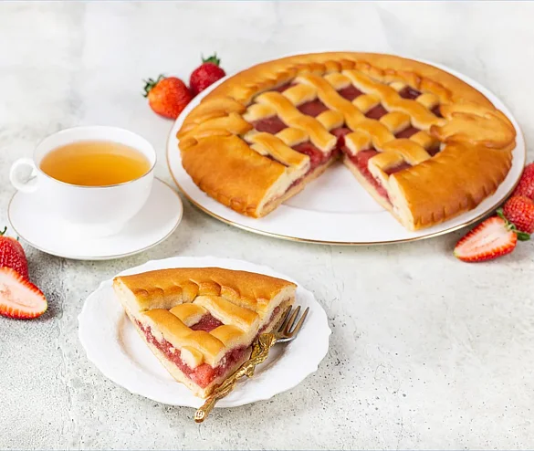 Изумительный постный пирог с изобилием начинки из ароматной клубники.