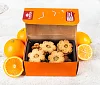 Мука пшеничная в/с, масло сливочное (22%) (сливки пастеризованные), сахар тростниковый, апельсины свежие (8%), яйцо куриное пищевое, лимоны свежие (4%), патока, желирующий агент пектины, вода очищенная, консервант сорбат калия. Произведено на предприятии, на котором также выпускаются продукты, содержащие орехи, арахис, кунжут.