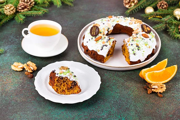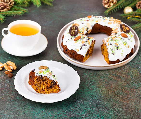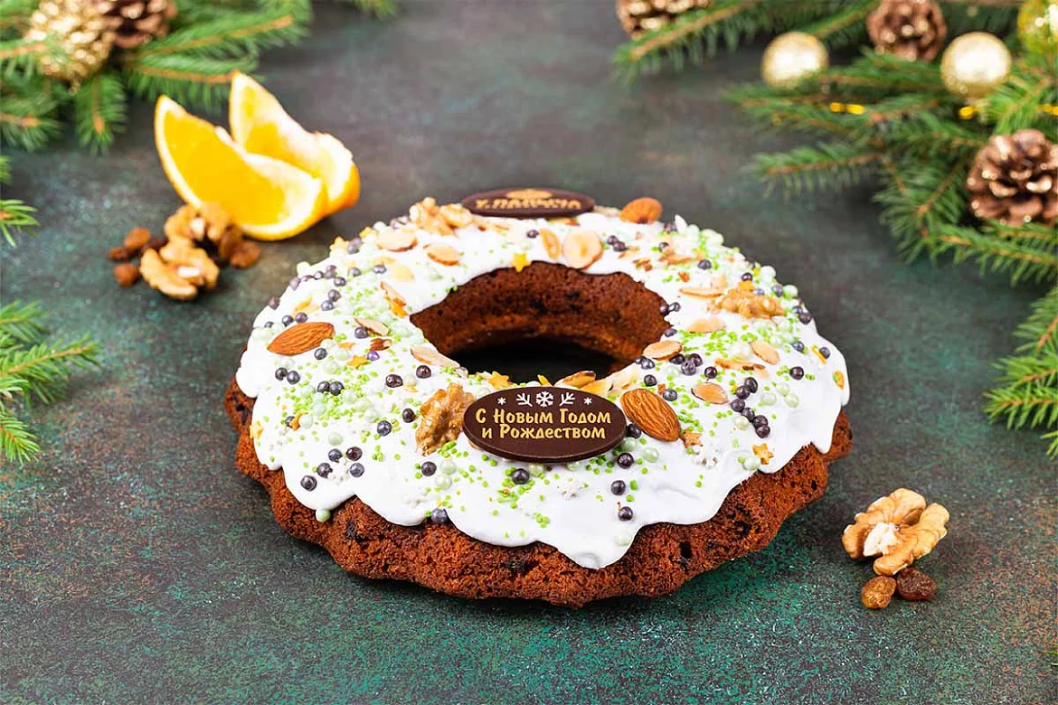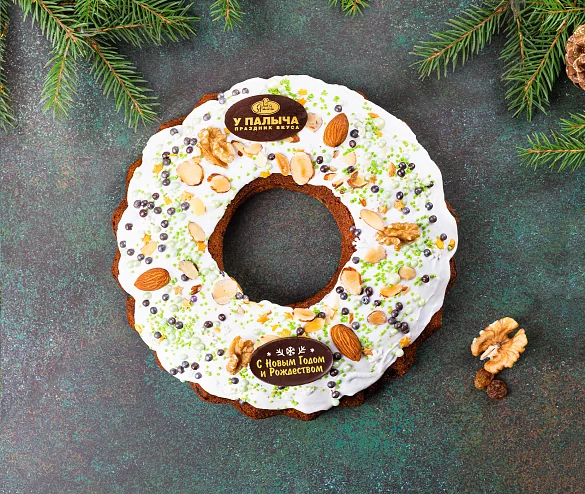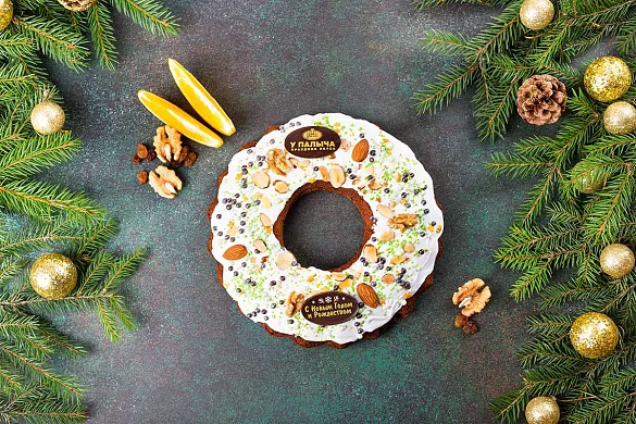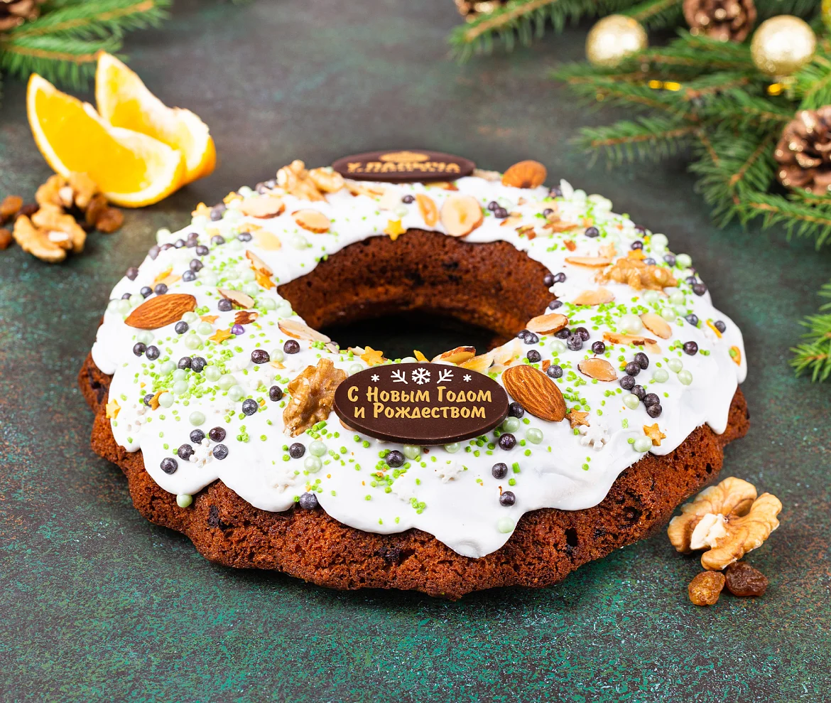Традиционная праздничная рождественская выпечка в исполнении от Палыча. Изобилие грецких орехов, миндаля, изюма и свежих апельсинов. Нежное влажное тесто с ярким ароматом зимних специй, много кусочков темного шоколада для идеального праздничного вкуса. И много нежной сахарной помадки сверху. Идеальное угощение для католического и православного Рождества, и также для Нового года!