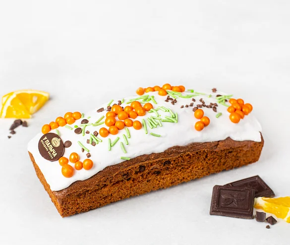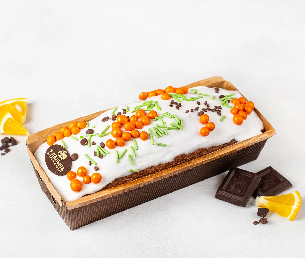 Воздушное сдобное тесто приготовленное исключительно из натуральных продуктов: отборные яйца, натуральный йогурт, свежие апельсины, горький шоколад. Много вкуснейшей помадки от Палыча и роскошный декор из разноветных сладких бусин. И шоколадная медалька с логотипом "У Палыча" из премиального темного шоколада из отборных какао-продуктов.