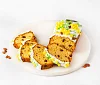 Сахар, помадка сахарная (сахар, вода очищенная, патока, эмульгатор моно- и диглицериды жирных кислот, ароматизатор экстракт ванили натуральный), яйцо куриное пищевое, мука пшеничная в/с, масло подсолнечное рафинированное дезодорированное, виноград сушеный (изюм) (9%), вода очищенная, крахмал кукурузный, крахмал пшеничный, йогурт сухой обезжиренный (молоко сухое обезжиренное, закваска), молоко цельное сухое, шоколад темный (какао тёртое, сахар, масло какао, эмульгатор соевый лецитин, ароматизатор экстракт ванили натуральный), ароматизаторы, разрыхлитель сода пищевая (гидрокарбонат натрия),крупа кукурузная, мука рисовая, соль, стабилизатор: карбонат кальция, носитель гуммиарабик, эмульгатор соевый лецитин, красители: бета-каротин, куркумин, медные комплексы хлорофиллов, оксиды железа. Произведено на предприятии, на котором также выпускаются продукты, содержащие арахис, кунжут, сою. ПРИ ПРОИЗВОДСТВЕ ИСПОЛЬЗУЕТСЯ ИЗЮМ, КОТОРЫЙ ПРОШЕЛ ТЩАТЕЛЬНУЮ ОБРАБОТКУ, ОДНАКО, В РЕДКИХ СЛУЧАЯХ НЕ ИСКЛЮЧЕНО ПОПАДАНИЕ КОСТОЧЕК И (ИЛИ) ИХ ФРАГМЕНТОВ.