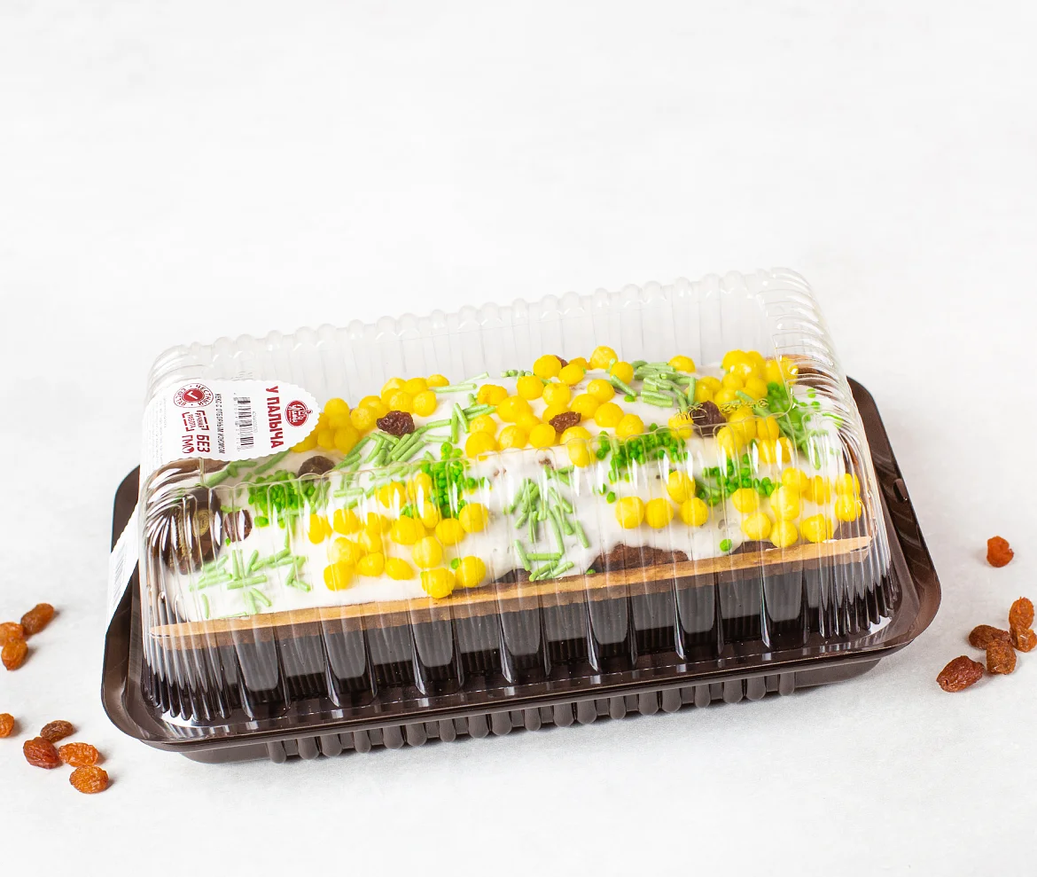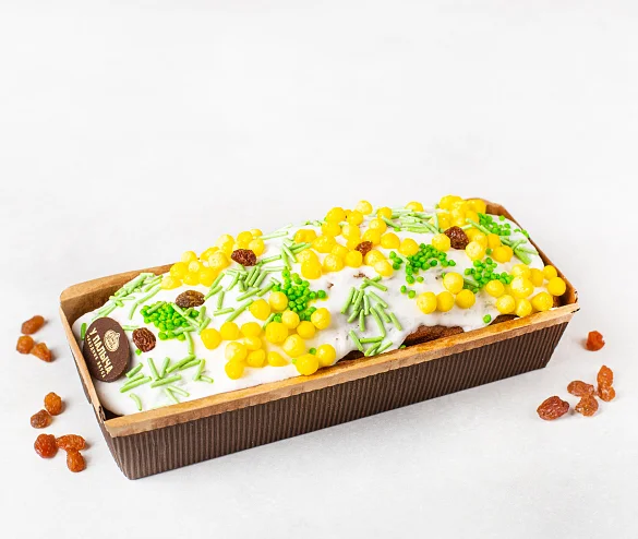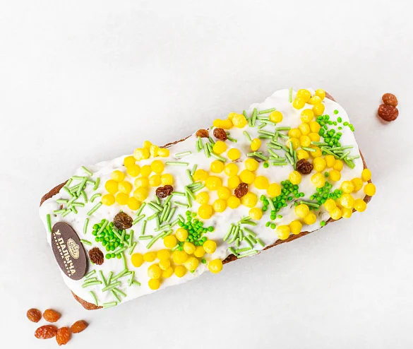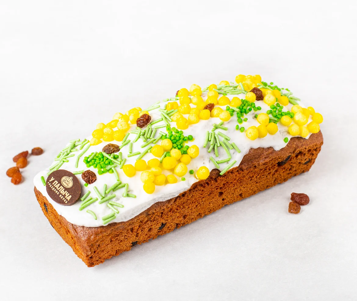Воздушное сдобное тесто приготовленное исключительно из натуральных продуктов: отборные яйца, натуральный йогурт, ароматный изюм. Много вкуснейшей помадки от Палыча и роскошный декор из разноветных сладких бусин. И шоколадная медалька с логотипом "У Палыча" из премиального темного шоколада из отборных какао-продуктов.