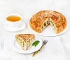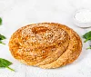 Традиционный греческий пирог из слоеного теста в форме большой улитки. Воздушное слоеное тесто из 256 слоев обладает особенно тонким вкусом и прекрасно сочетается с начинкой из настоящего творога, нежного творожного сыра и полезного шпината. Сверху пирог посыпан ароматным и полезным кунжутом. Благодаря оригинальной форме начинка равномерно распределана по пирогу. Слоеный пирог от Палыча - крафтовый пирог, изготовленный вручную, без улучшителей и заменителей.