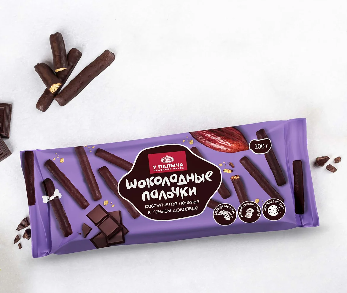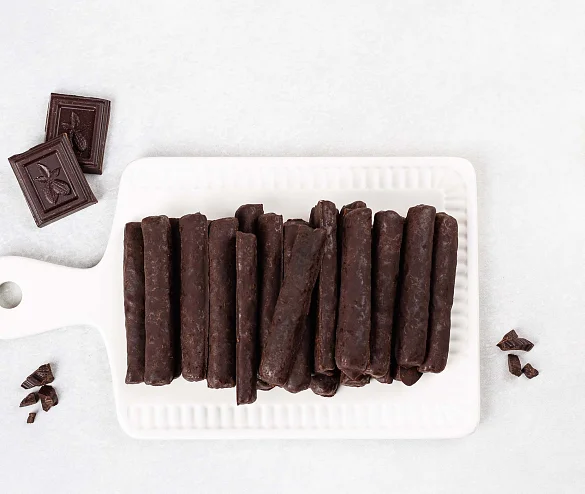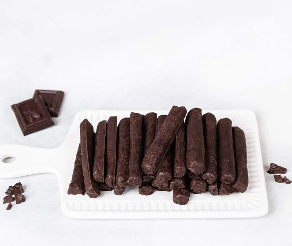 Рассыпчатые песочные палочки в настоящем темном шоколаде. Тонкие хрустящие палочки, покрытые элитным темным шоколадом из лучших какао-продуктов с премиальным эквадорским какао, - это идеальное удовольствие для себя к чаю или кофе и отличный подарок.