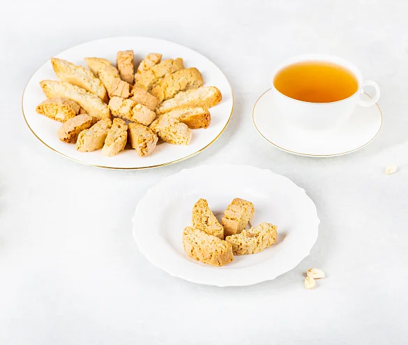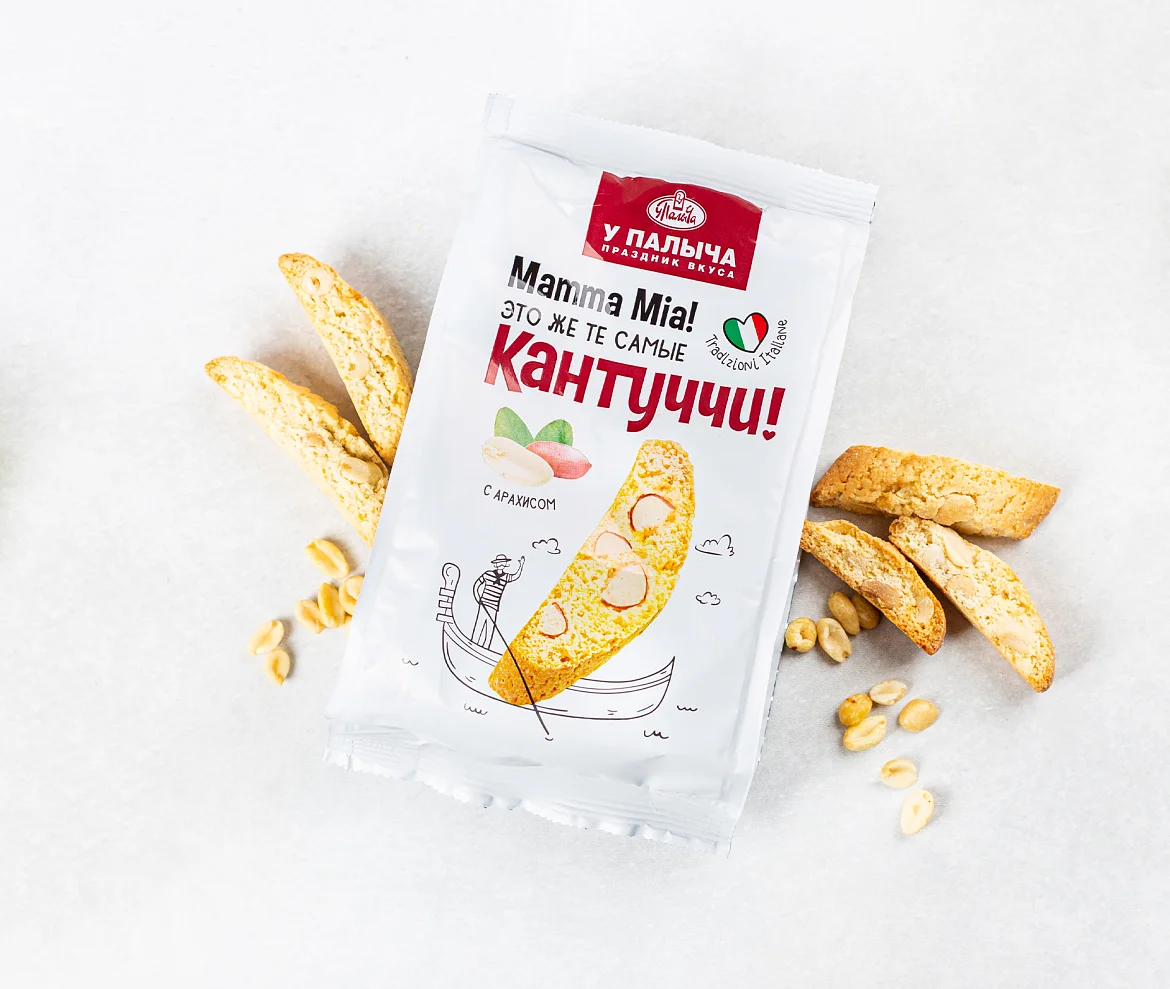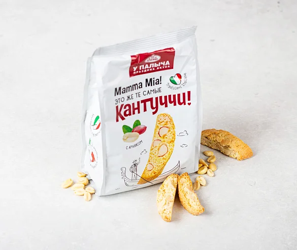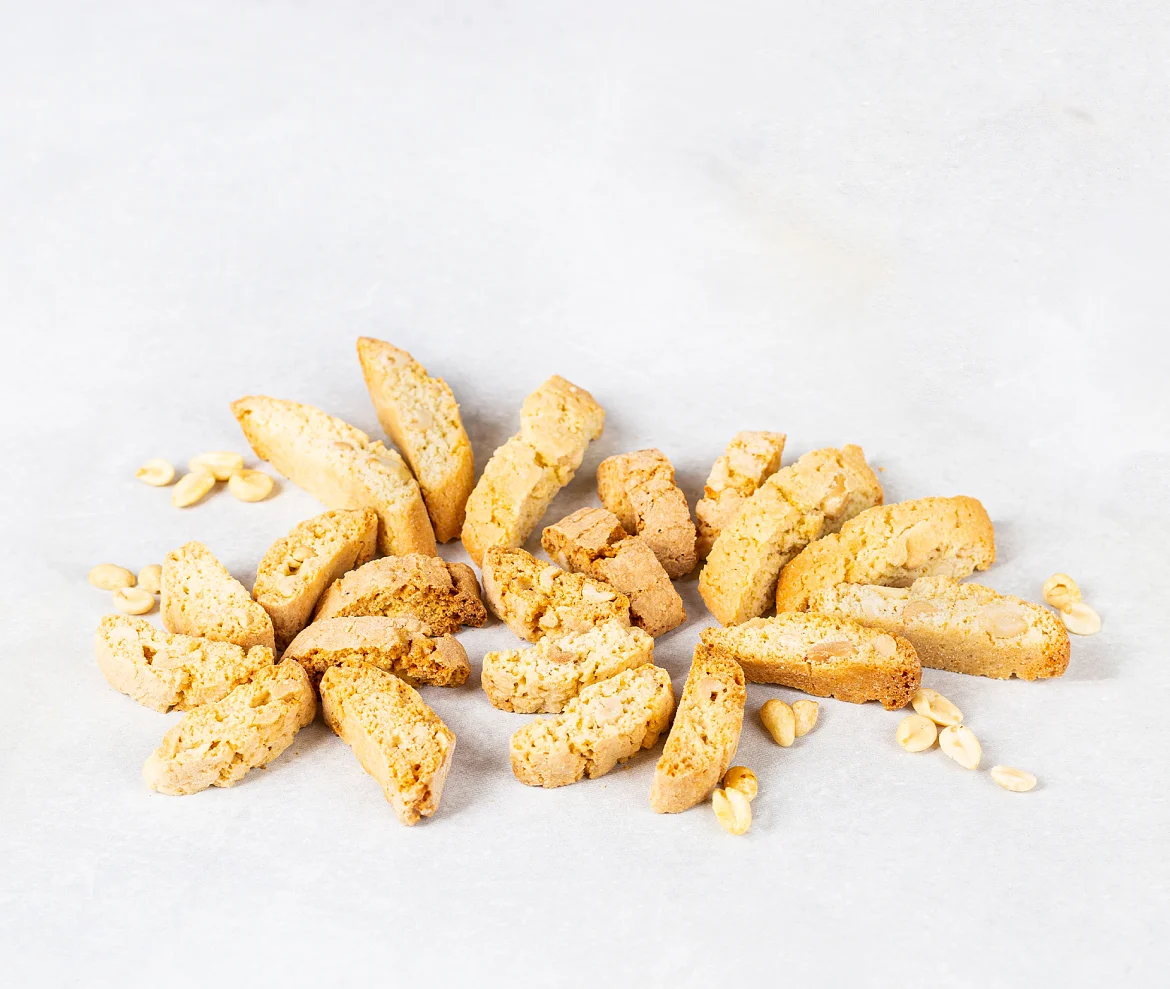 Традиционное итальянское печенье из сдобного теста с отборным жареным арахисом. Печенье сначала выпекается, а потом подсушивается, поэтому оно такое хрустящее и румяное. В составе премиальная бурбонская ваниль, ароматная цедра лимонов и много вкуснейшего арахиса - идеальное лакомство для чаепития.