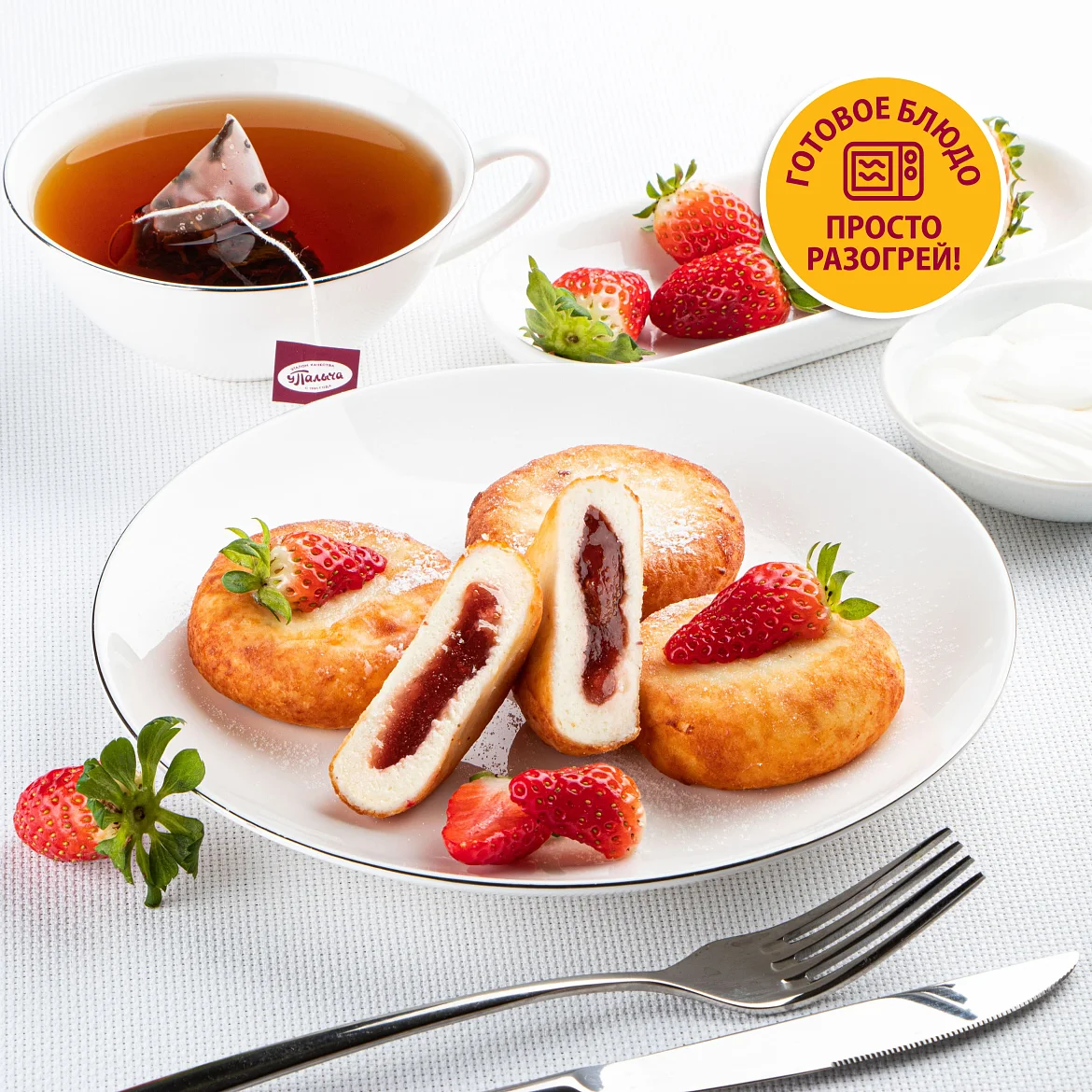 Что может быть лучше легендарных Сырников ТМ «У Палыча» — только сырники с натуральной ягодой! Сырники с клубникой имеют нежный и мягкий вкус благодаря творогу, из которого они приготовлены. Мы используем творог собственного производства из молока с повышенным содержанием белка. Начинка из натуральной свежемороженой клубники добавляет сладость и легкую кислинку, что делает вкус более ярким и освежающим. В этих сырниках сочетается кремовая текстура творога и фруктовая нотка спелой клубники, создавая гармоничное сочетание. Если вы любите сладкие десерты с ягодами, то они могут стать отличным выбором! Продукт является замороженным готовым блюдом. Вам останется только достать из упаковки и разогреть любым доступным способом: в микроволновой печи, на сковороде или в духовом шкафу. Легендарные Сырники с клубникой ТМ «У Палыча» станут любимым и легким вариантом для вашего завтрака или восхитительным десертом, который непременно порадует своим вкусом ваших детей, родных и близких.