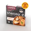 Блинчики (молоко пастеризованное, мука пшеничная хлебопекарная высшего сорта, яйцо куриное пищевое, сахар, соль), начинка (творог (молоко пастеризованное, закваска, молокосвертывающий фермент), сметана (сливки нормализованные, закваска), сахар, соль, ароматизатор ванилин), масло сливочное. На предприятии производится продукция с применением следующих аллергенов: горчицы, глютена, молока, рыбы, сои, яиц.