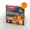 Блинчики (молоко пастеризованное, мука пшеничная хлебопекарная высшего сорта, яйцо куриное пищевое, сахар, соль), начинка (грибы шампиньоны, куриное филе, лук репчатый, масло растительное подсолнечное, соль, зелень укропа, перец черный молотый), масло сливочное. На предприятии вырабатывается продукция с применением следующих аллергенов: горчицы, глютена, молока, рыбы, сои, яиц.