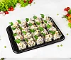 Любимый традиционный салат из овощей, горошка и вареной говядины. Заправлен вкуснейшим майонезом собственного производства исключительно из натуральных ингредиентов. ***Мы заботимся о Вас и Ваших гостях — к платтеру прилагается набор из 10 экологичных и безопасных вилок из биоразлагаемого кукурузного крахмала.