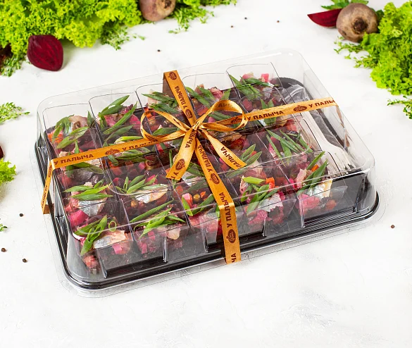 Классика вкуса, вкуснейший винегрет в оригинальном прочтении шеф-повара У Палыча. Отборные овощи, сельдь собственного посола и изысканный соус. Идеально для праздничного стола дома или на работе.