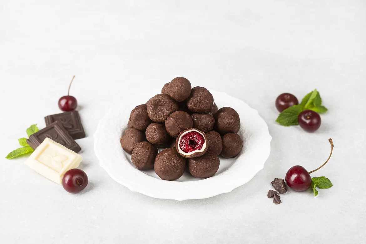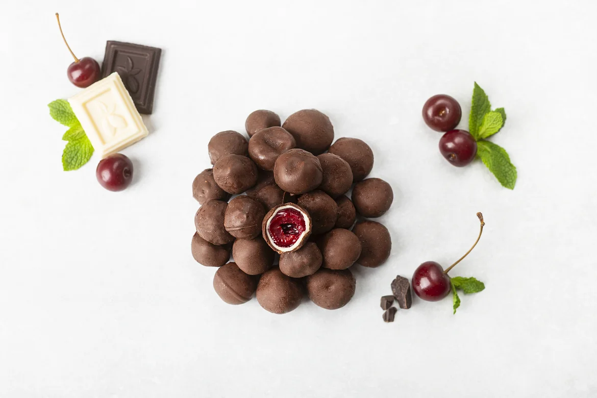 Побалуйте себя изысканным наслаждением — вишня в белом и темном шоколаде! Сочная свежемороженая вишня раскрывает яркий фруктовый вкус, окутанная нежным белым шоколадом с кремовой сладостью молока и тонким ароматом ванили, а также насыщенным темным шоколадом, созданным из лучшего премиального эквадорского какао без заменителей. Использование только лучших какао-продуктов гарантирует непревзойдённый вкус. Можно наслаждаться сразу, но лучше дать десерту постоять час при комнатной температуре — так вкус станет ещё насыщеннее. Идеально для гурманов! Энергетическая ценность (средние значения на 100 г продукта): 366 ккал/1535 кДж.