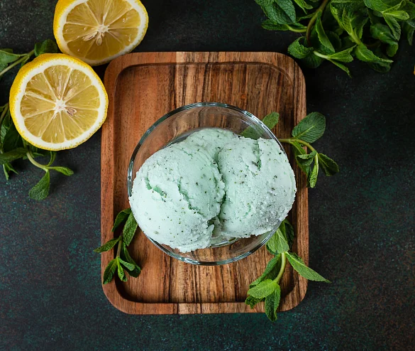 Бесподобно освежающий сорбет! Натуральная мята в сочетании со свежевыжатым лимоном - это просто взрыв вкуса! Сорбет наполняет бодростью, силой и свежестью и дарит прохладу. Настоящая находка для любителей активного, сочного, яркого лета!