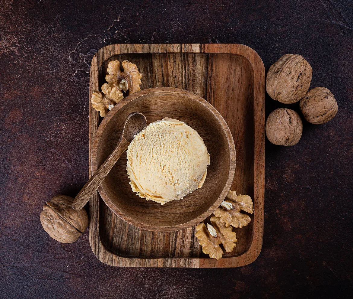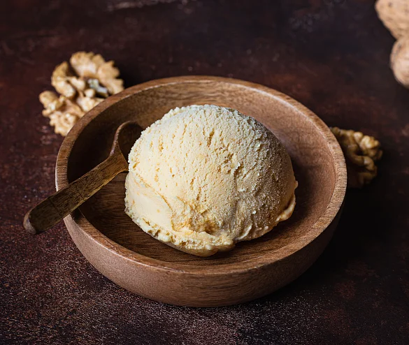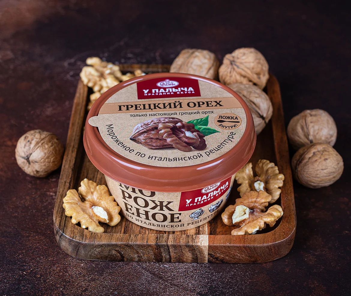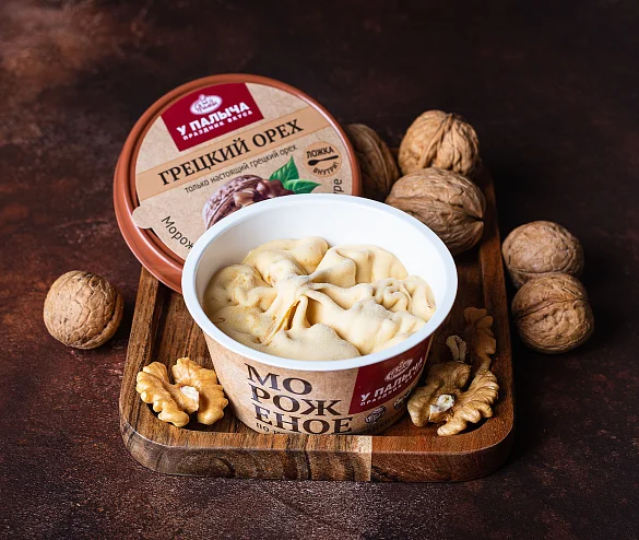 Мороженое с богатым и насыщенным вкусом! Натуральное молоко и отборное сливочное масло составляют легкую тающую основу этого десерта, вареная сгущенка собственного производства оттеняет яркий терпкий аромат рома. Нотки ванили придают вкусу легкость и нежность. Чудесное сочетание ингредиентов дополняется бесподобным вкусом дробленого грецкого ореха.