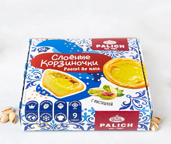 Самый известный португальский десерт, визитная карточка Лиссабона в оригинальном прочтении кондитеров У Палыча. Вкуснейшая корзиночка из воздушного слоеного теста в сочетании с нежным кремом - непередаваемое блаженство. Только лучшие отборные ингредиенты, настоящее молоко без заменителей молочных жиров, свежие яйца и отборная иранская фисташка сорта Ахмад Агаи - попробуйте это признанное кулинарное чудо света!