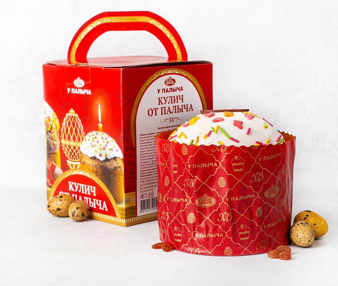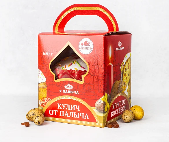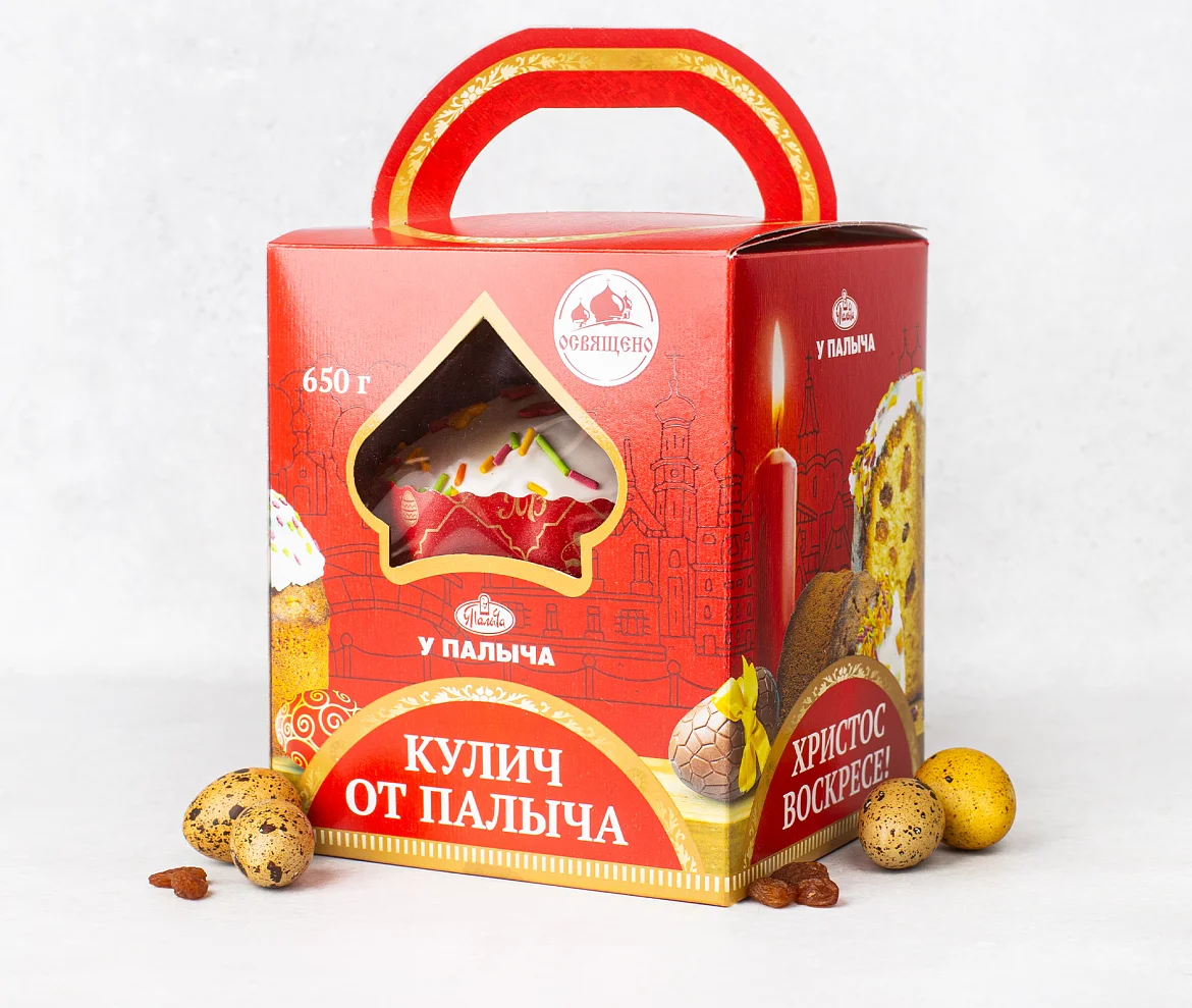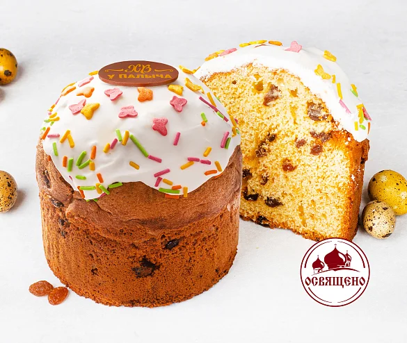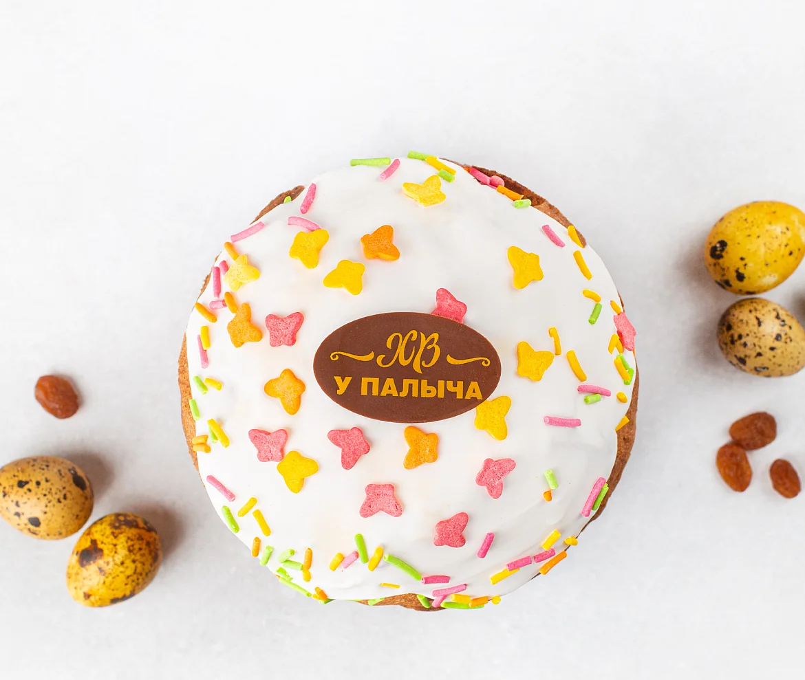 С заботой о вас вся пасхальная выпечка уже освящена. ***Кулич - главное лакомство к Светлому празднику! Воздушный, пористый кулич приготовлен исключительно из отборных ингредиентов с изобилием ароматного изюма. Украшен аппетитной помадкой, сахарными весенними цветами и медалькой из темного шоколада.