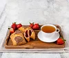 Изящные конвертики изготавливаются из тонко раскатанного нежного песочного теста на твороге с начинкой из натуральной клубники. Сверху пирожное украшается сердцем из теста на твороге.
