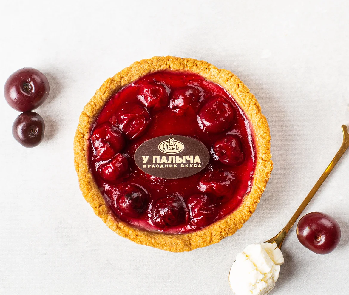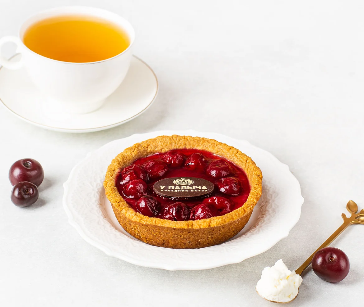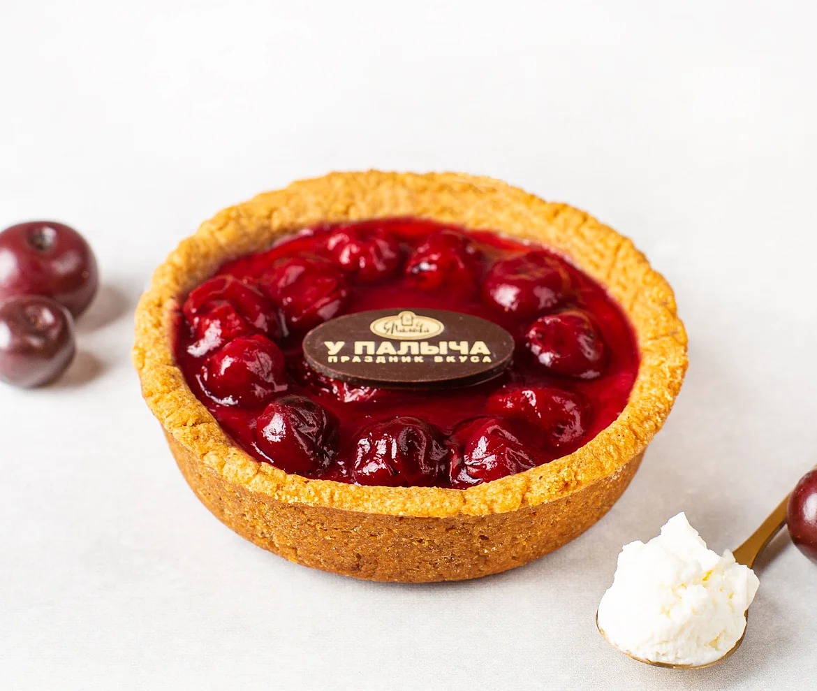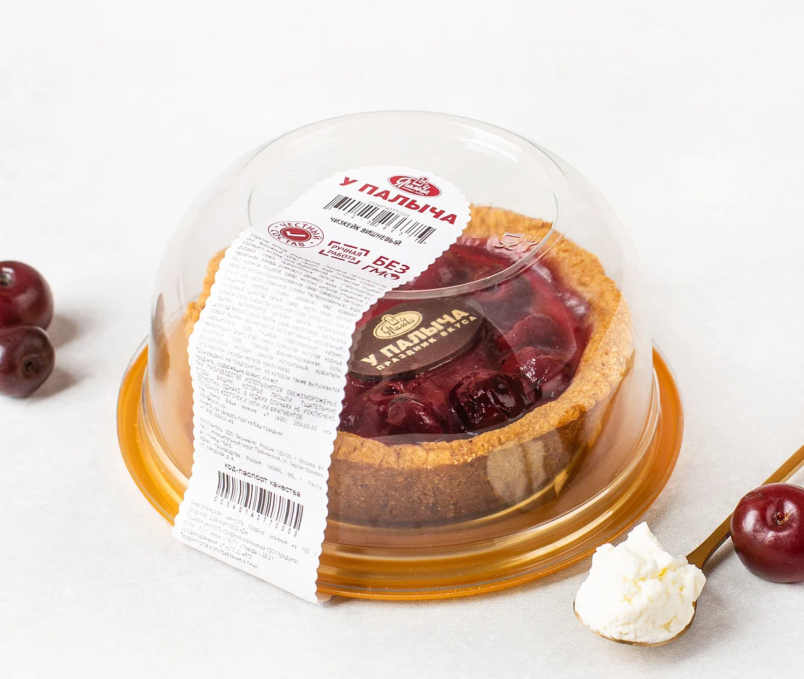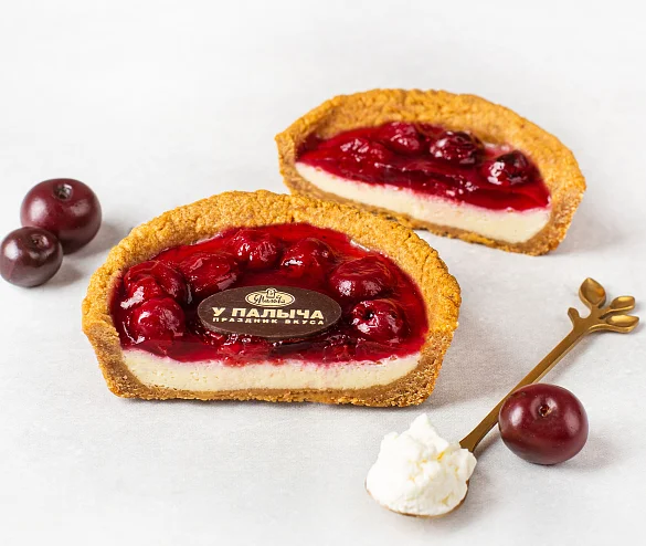 Хрустящая и рассыпчатая медовая основа гармонирует с нежным творожным сыром и сладкой начинкой из цельных ягод вишни. Этот легкий десерт с сливочными нотками и насыщенным фруктовым вкусом привлечет внимание как взрослых, так и детей. Чизкейк станет отличным дополнением к чашечке чая или кофе.