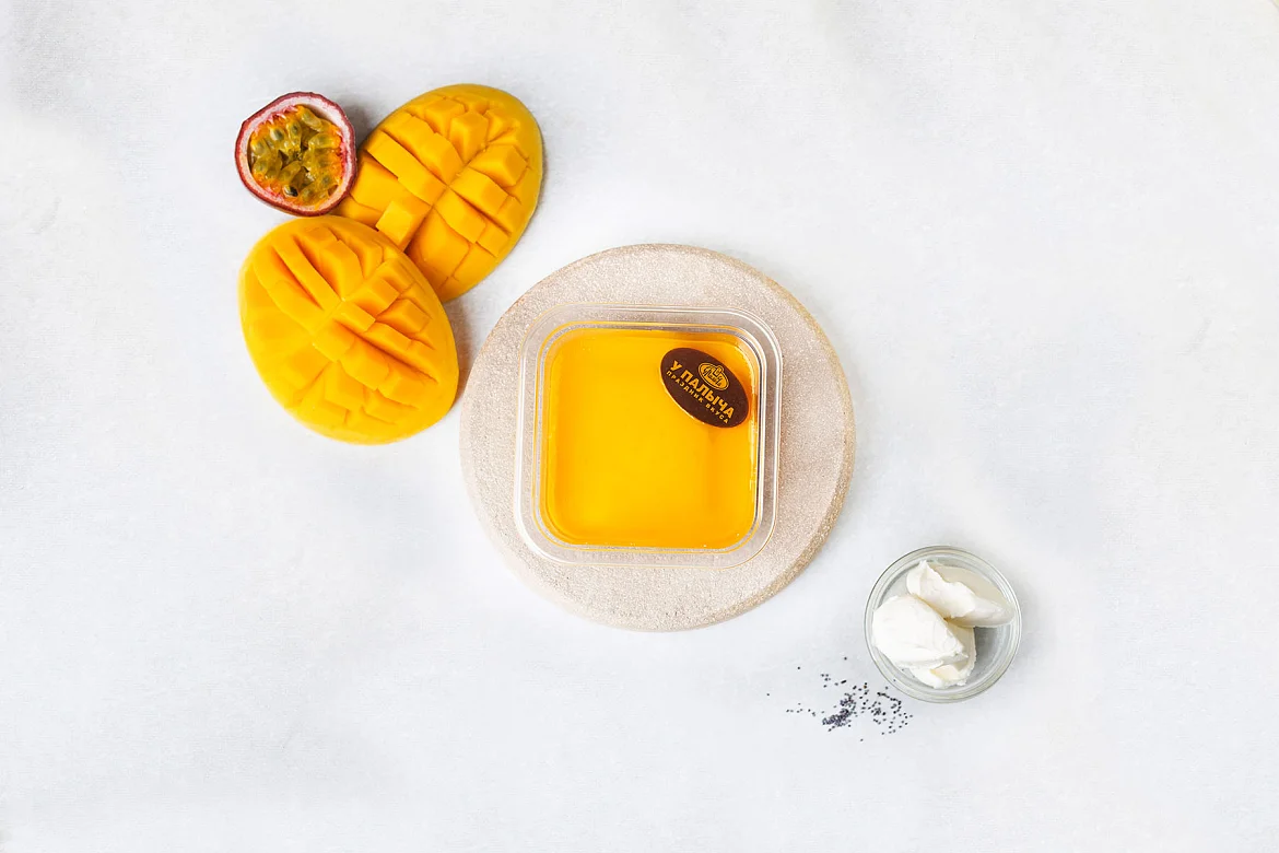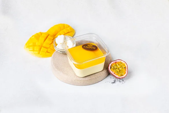 Нежный бисквит с маком, пропитанный воздушным кремом из творожного сыра, кокосовых сливок и сметаны. Экзотическое пюре из тропических маракуйи и манго создаёт яркий тропический вкус с лёгкой кислинкой. Идеально для наслаждения в стаканчике!