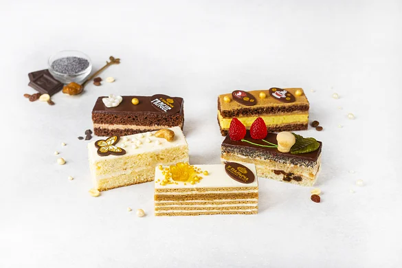 Для самых любопытных лакомок пять видов наших тортов в миниатюре: «Прага», «Ореховое», «Кофейное», «Медовое» и «Лесная поляна».