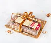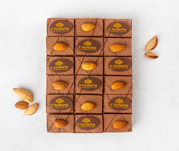 Сахар, масло сливочное (18%) (сливки пастеризованные), яйцо куриное пищевое, ядра орехов фундука (10%), вода очищенная, ядра миндаля, ядра арахиса, молоко питьевое, мука пшеничная в/с, шоколад темный (какао тёртое, сахар, масло какао, эмульгатор соевый лецитин, ароматизатор экстракт ванили натуральный), какао-порошок, коньяк (дистилляты коньячные, выдержанные в контакте с древесиной дуба не менее трех лет, вода питьевая, сахарный сироп, краситель сахарный колер I простой), паста ореховая (сахар, масло какао, сыворотка молочная сухая, какао-порошок, ядра орехов фундука протертые, эмульгатор соевый лецитин), масло подсолнечное рафинированное дезодорированное, регулятор кислотности лимонная кислота, ароматизатор экстракт ванили натуральный, глюкоза ферментированная, краситель натуральный бета-каротин.