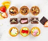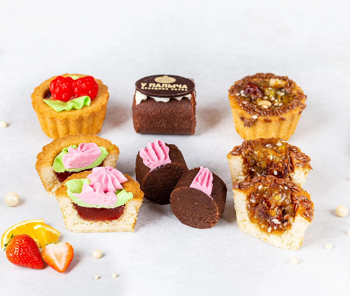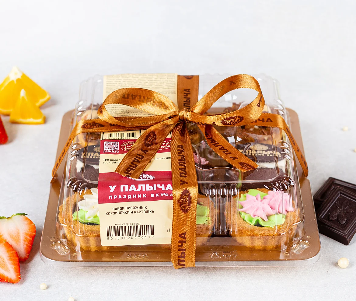 Три вида самых любимых пирожных для всей семьи и на любой вкус! Картошка. Шоколадный бисквит пропитан ароматным сиропом с коньяком, украшен сливочным кремом из сгущенного молока и отборного сливочного масла и темным шоколадом. Корзиночка оригинальная. Рассыпчатое песочное тесто с начинкой из джема из спелой клубники и сливочного крема в виде ягод и цветов. Корзиночка «Восточная сладость». Рассыпчатое песочное тесто с начинкой из оригинальных джемов: джема из ароматного апельсина, лимонов и фиников и джема из сухофруктов с черносливом и отборных орехов, с семенами льна.