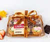 Сахар, мука пшеничная в/с, молоко цельное сгущенное с сахаром (12%) (нормализованное молоко, сахар (сахароза, лактоза)), яйцо куриное пищевое, масло сливочное (8%) (сливки пастеризованные), маргарин (рафинированные дезодорированные масла в натуральном и модифицированном виде (пальмовое масло и его фракции, подсолнечное масло), вода), вода очищенная, ядра арахиса, апельсины свежие, семена льна, слива сушеная (чернослив), крахмал картофельный, какао-порошок, молоко питьевое, шоколад темный (какао тёртое, сахар, масло какао, эмульгатор соевый лецитин, ароматизатор экстракт ванили натуральный), финики, виноград сушеный (изюм), клубника с/м, лимоны свежие, ядра орехов фундука, патока, коньяк (дистилляты коньячные, выдержанные в контакте с древесиной дуба не менее трех лет, вода питьевая, сахарный сироп, краситель сахарный колер I простой), семена кунжута, регулятор кислотности лимонная кислота, загустители: пектины, геллановая камедь; ароматизаторы, соль, красители натуральные: кармины, сахарный колер I простой, медные комплексы хлорофиллов, бета-каротин; глюкоза ферментированная. ПРИ ПРОИЗВОДСТВЕ ИСПОЛЬЗУЮТСЯ ОРЕХИ И СУХОФРУКТЫ, КОТОРЫЕ ПРОШЛИ ТЩАТЕЛЬНУЮ ОБРАБОТКУ, ОДНАКО, В РЕДКИХ СЛУЧАЯХ НЕ ИСКЛЮЧЕНО ПОПАДАНИЕ СКОРЛУПЫ, КОСТОЧЕК И (ИЛИ) ИХ ФРАГМЕНТОВ.