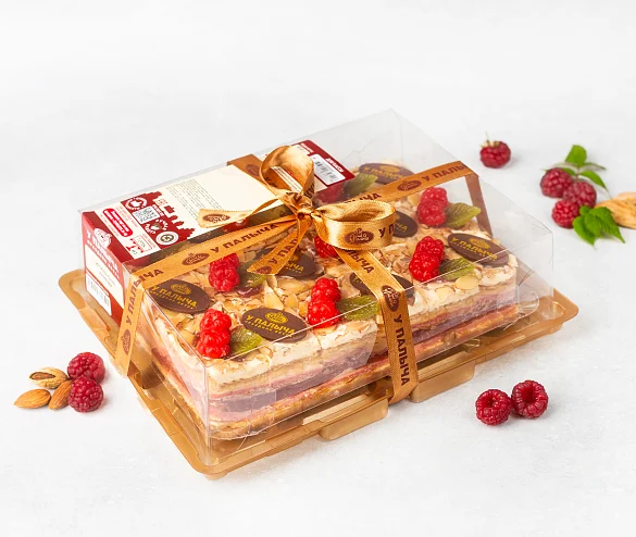 Сахар, яйцо куриное пищевое, масло сливочное (15%) (сливки пастеризованные), малина с/м (15%), молоко питьевое, мука пшеничная в/с, вода очищенная, шоколад темный (какао тёртое, сахар, масло какао, эмульгатор соевый лецитин, ароматизатор экстракт ванили натуральный), масло кокосовое рафинированное дезодорированное, крахмал картофельный, желирующие агенты: желатин, агар; сок лимона, соль, красители натуральные: кармины, бета-каротин; разрыхлитель сода пищевая (гидрокарбонат натрия), глюкоза ферментированная, ароматизатор экстракт ванили натуральный.