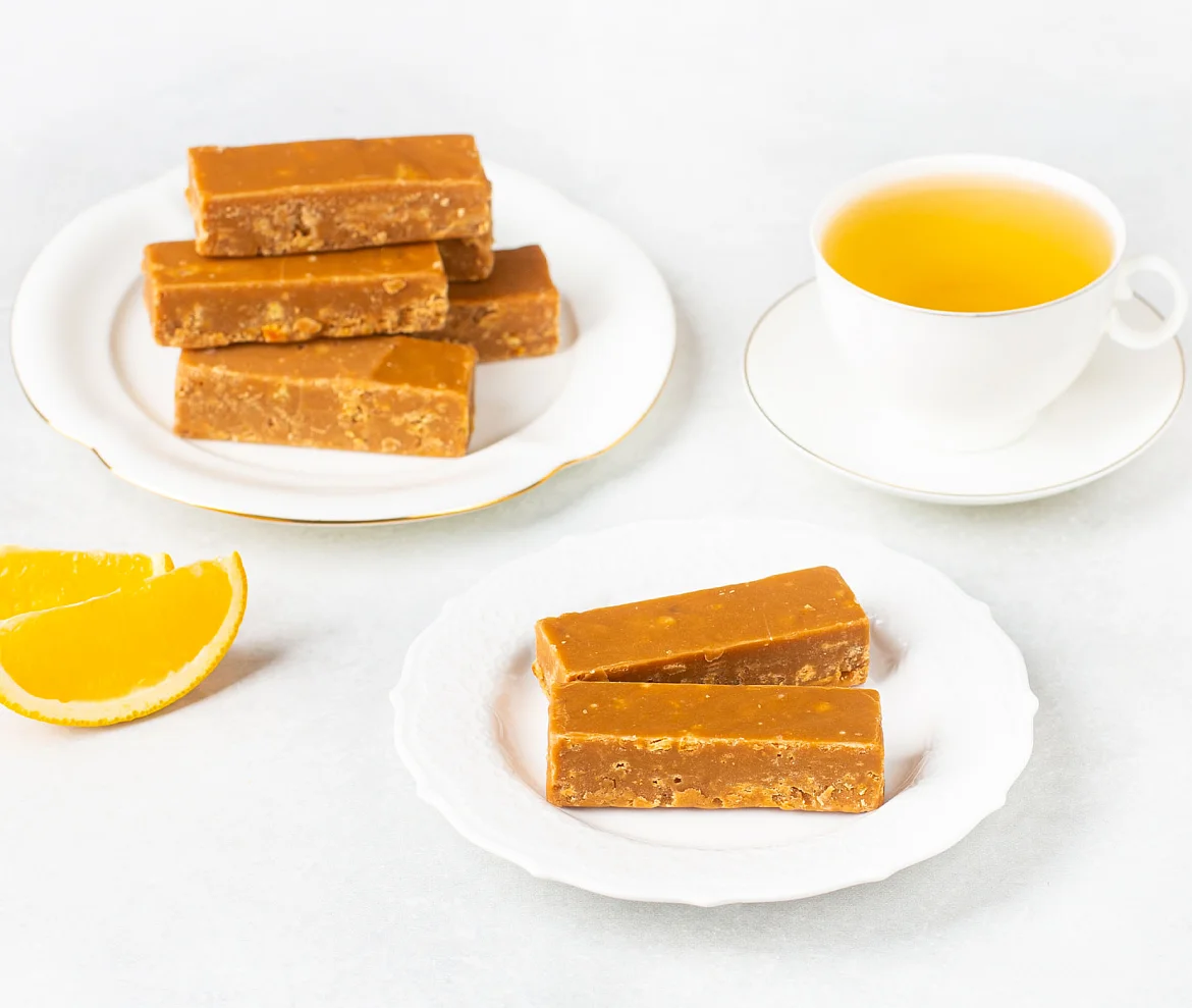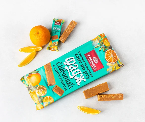 Потрясающее нежное лакомство ручной работы с ярко выраженным сливочно-апельсиновым вкусом и понятным натуральным составом. Это уникальный десерт, такой Вы еще точно нигде не пробовали. Он ни на что не похож, ему просто нет равных. Лаконичная композиция из отборных ингредиентов позволяет насладиться каждым кусочком восхитительного Сливочного Фаджа на 100%. Густое сгущенное молоко, свежее сливочное масло и цедра крупных спелых апельсинов, подготовленная особенным образом и придающая вкусу Фаджа гармонию с нотками солнечных субтропиков. Богатый вкус — богатая история — Фадж популярен и любим во всем мире с XIX века. Мы соблюдаем традиции и готовим этот легендарный десерт по старинному английскому рецепту.