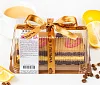 Молоко сгущенное с сахаром вареное (16%) (сахар (сахароза, лактоза), молоко сухое обезжиренное, вода, масло сливочное), масло сливочное (сливки пастеризованные), сахар, молоко цельное сгущенное с сахаром (молоко нормализованное, сахар (сахароза, лактоза)), мука пшеничная в/с, сметана (9%) (сливки, закваска), яйцо куриное пищевое, вода очищенная, лимоны свежие, какао-порошок, шоколад белый (сахар, масло какао, молоко цельное сухое, сыворотка молочная сухая, эмульгатор соевый лецитин, ароматизатор экстракт ванили натуральный), желирующий агент желатин, шоколад темный (какао тёртое, сахар, масло какао, эмульгатор соевый лецитин, ароматизатор экстракт ванили натуральный), разрыхлитель сода пищевая (гидрокарбонат натрия), кофе натуральный молотый, красители: куркумин, кармины, бета-каротин; регулятор кислотности лимонная кислота, консервант сорбиновая кислота, ароматизатор экстракт ванили натуральный. Произведено на предприятии, на котором также выпускаются продукты, содержащие арахис, кунжут, орехи.