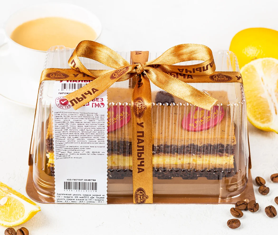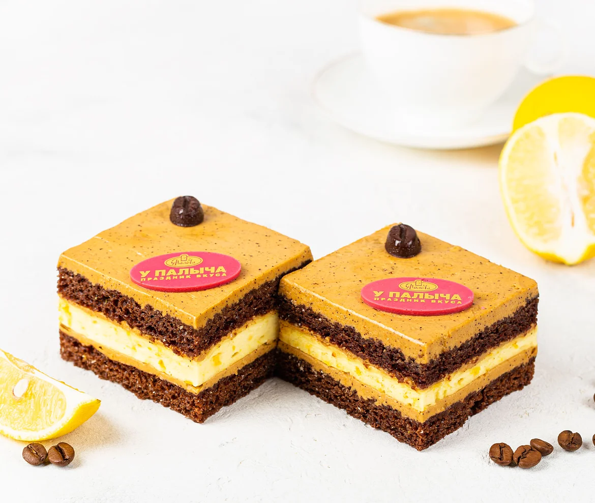 Пирожные состоят из шоколадного бисквита, лимонного суфле с натуральными лимонами и сливочно-кофейного крема со свежесваренным кофе.
