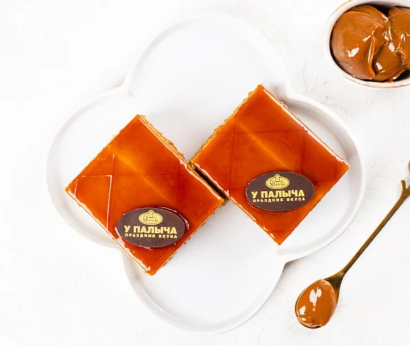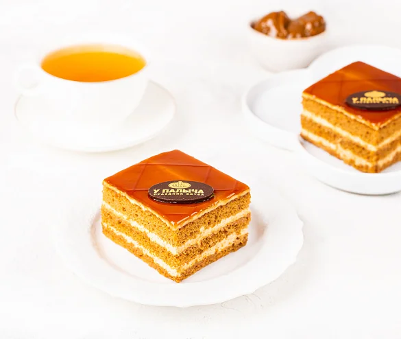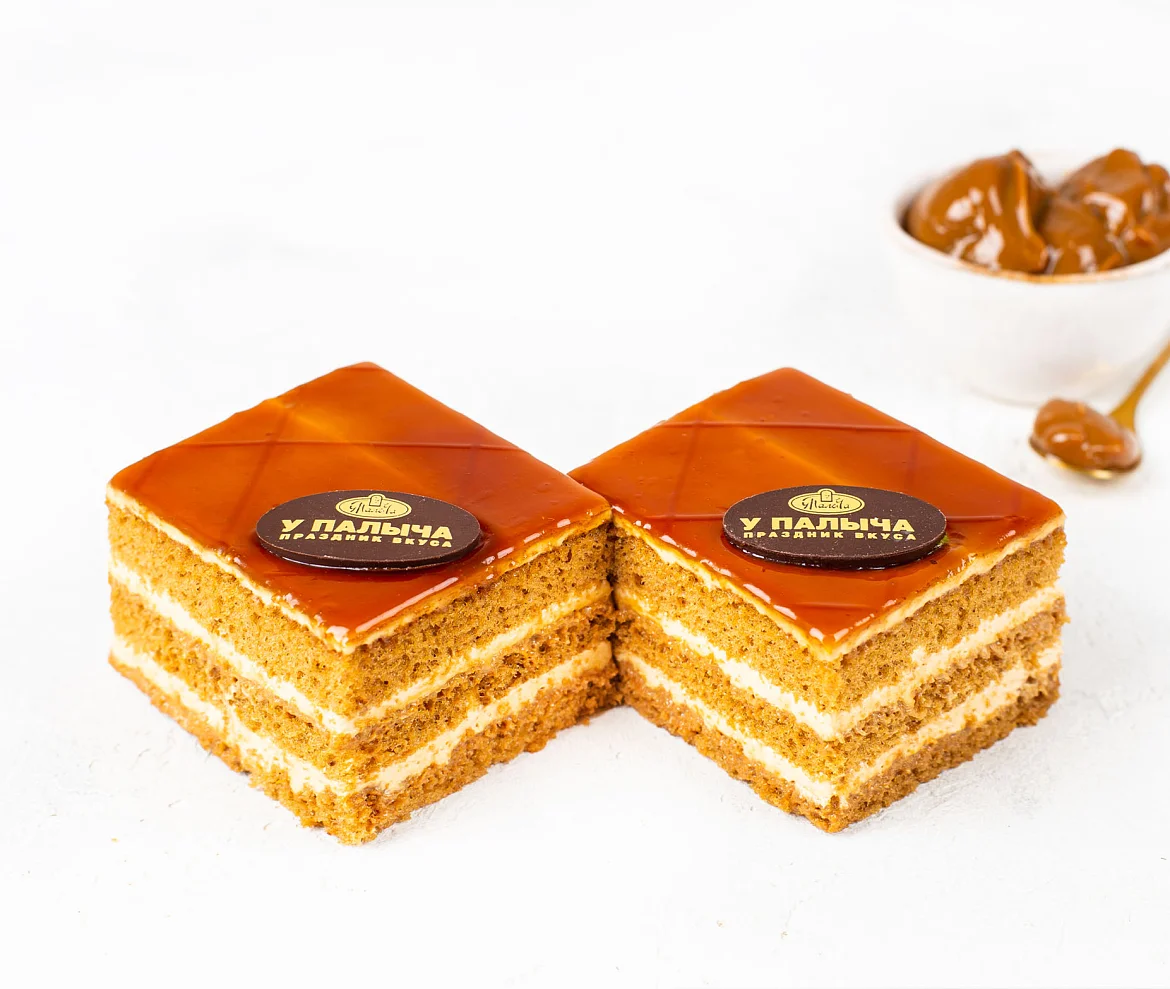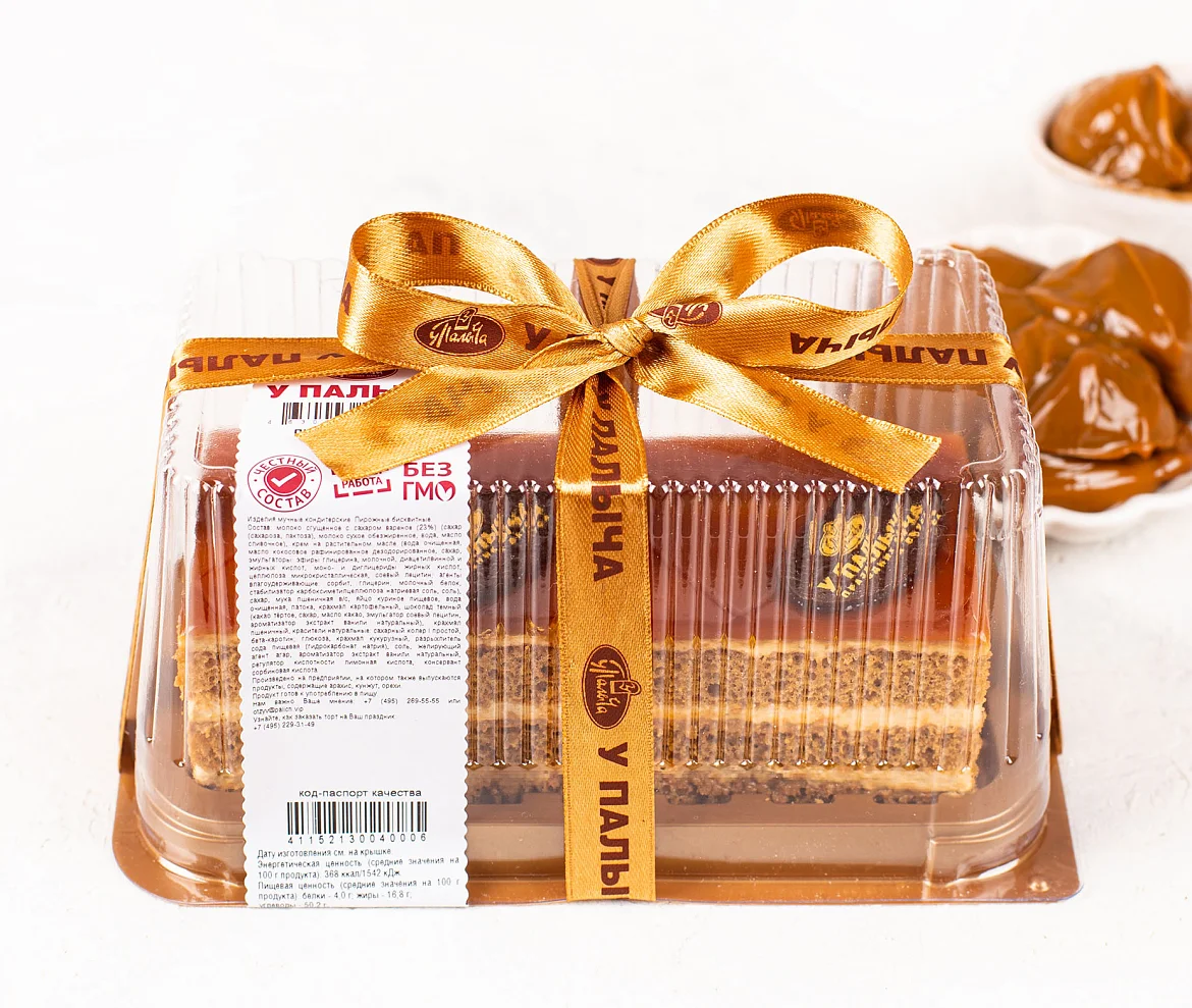 Превосходное сочетание карамельного бисквита, пропитанного варёным сгущенным молоком, и легкого крема на основе взбитых сливок с натуральной с варёной сгущёнкой.