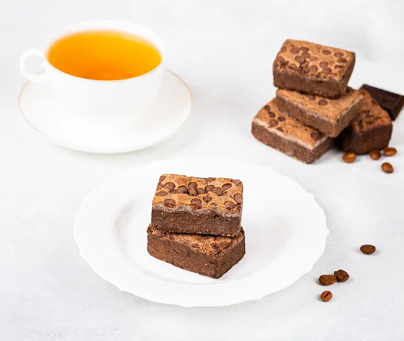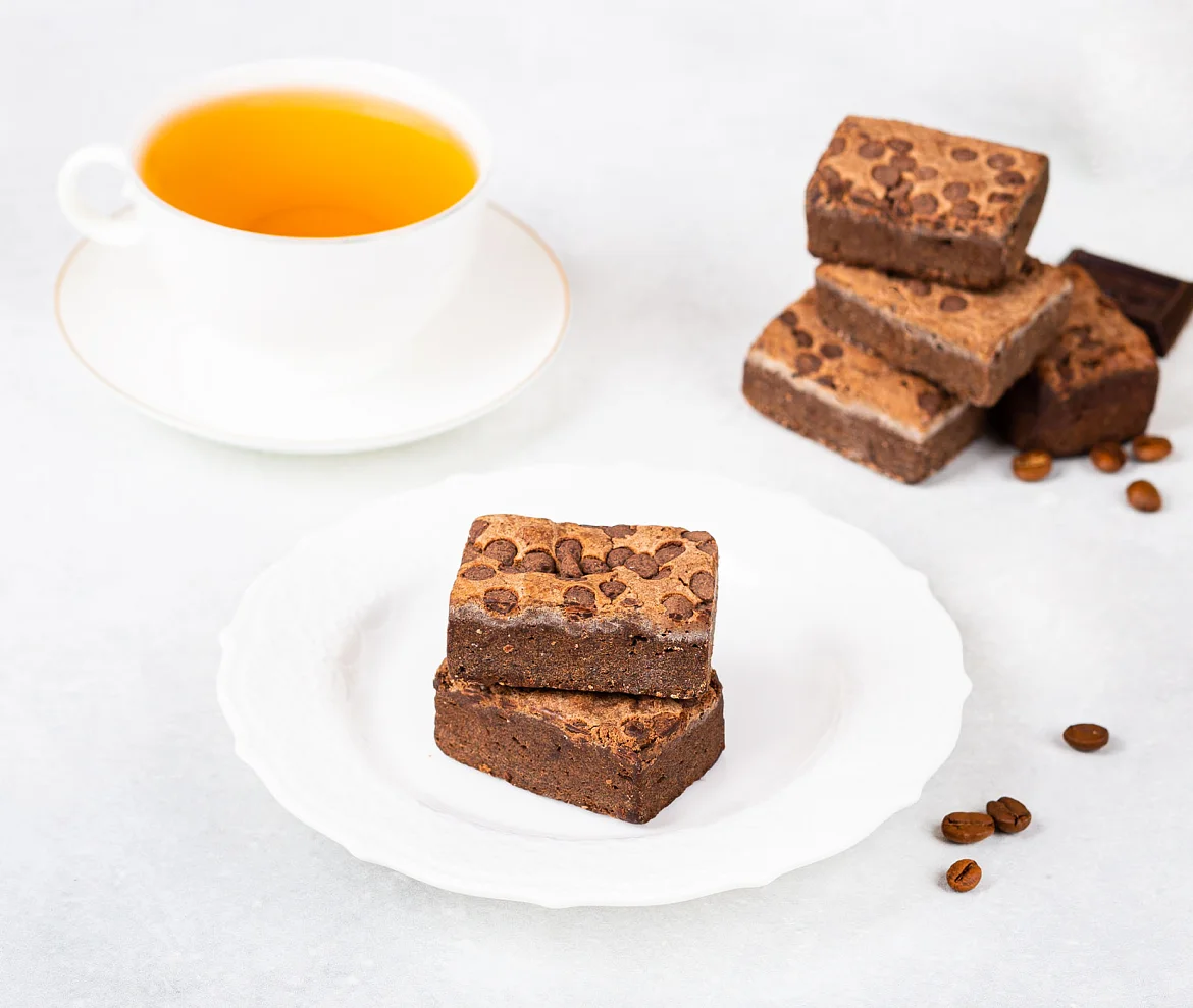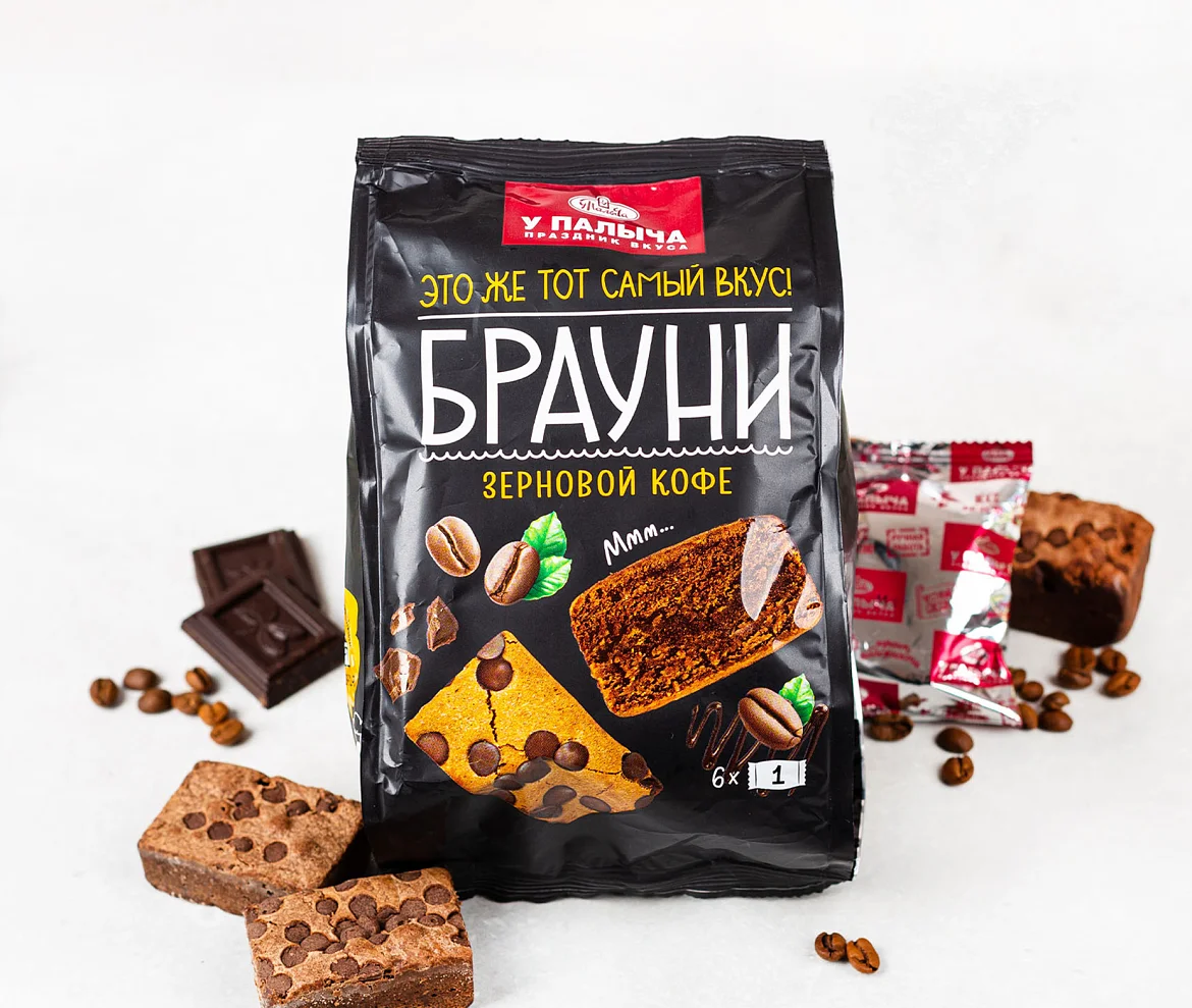 Легендарный шоколадный десерт с соблазнительным ароматом свежесваренного кофе. Изумительное сочетание нежного бисквита с темным шоколадом, кусочков настоящего темного шоколада и натурального молотого кофе. В брауни от Палыча действительно много настоящего шоколада без заменителей какао-продуктов и только натуральные ингредиенты. Пирожные в порционной упаковке, удобно взять с собой.