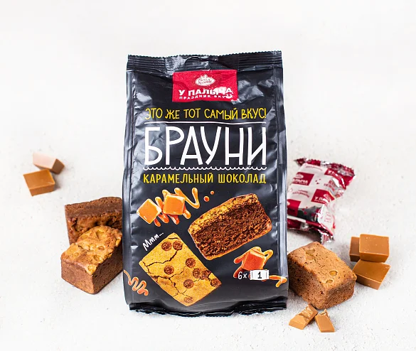 Легендарный шоколадный десерт с двумя видами шоколада - уникальным карамельным и премиальным темным шоколадом. Изумительное сочетание нежного шоколадного бисквита и кусочков карамельного шоколада. В брауни от Палыча только настоящий шоколад из отборных ингредиентов и настоящего какао-масла без заменителей. Пирожные в порционной упаковке, удобно взять с собой.