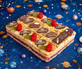 Шоколад белый карамелизированный (сахар, масло какао, молоко цельное сухое карамелизованное, сыворотка молочная сухая, эмульгатор соевый лецитин, ароматизатор экстракт ванили натуральный), сахар, вода очищенная, мука пшеничная в/с, яйцо куриное пищевое, маргарин (рафинированные дезодорированные растительные масла (кокосовое, подсолнечное), вода, эмульгаторы: Е471, Е433, соевый лецитин; консерванты: сорбиновая кислота, бензоат натрия; регулятор кислотности лимонная кислота), сыворотка молочная сухая, шоколад белый (сахар, масло какао, молоко цельное сухое, сыворотка молочная сухая, эмульгатор соевый лецитин, ароматизатор экстракт ванили натуральный), крахмал кукурузный, крахмал картофельный, агенты влагоудерживающие: сорбитовый сироп, глицерин; рисовые шарики (крупа кукурузная, мука рисовая, сахар, вода, стабилизатор карбонат кальция, соль), разрыхлители: дигидропирофосфат натрия, сода пищевая (гидрокарбонат натрия); масло какао, пребиотик олигофруктоза, ароматизатор натуральный, соль, красители: диоксид титана, бета-каротин; консервант сорбиновая кислота, ваниль сушеная молотая (Бурбон), глазирователь шеллак. Произведено на предприятии, на котором также выпускаются продукты, содержащие арахис, кунжут, орехи.